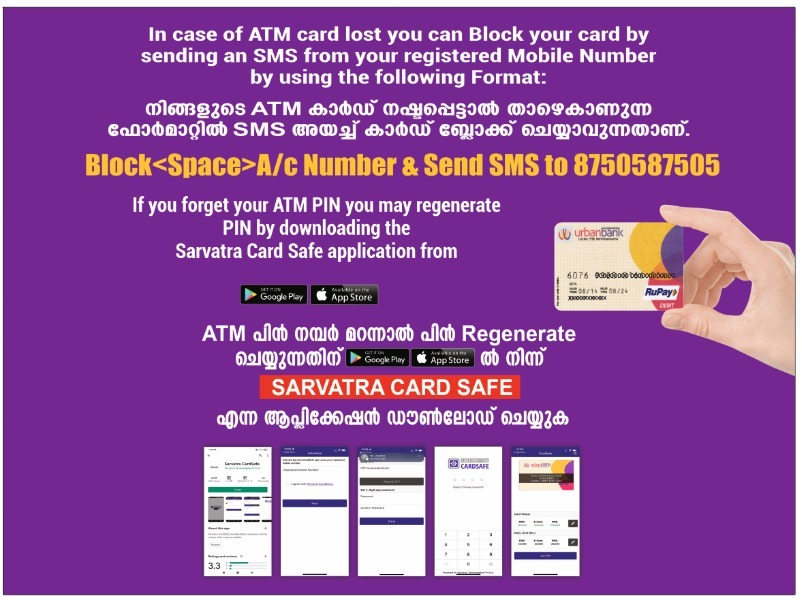 PAN, ഐ.ഡി പ്രൂഫ്, അഡ്രസ്സ് പ്രൂഫ് എന്നിവ ബാങ്കിൽ നൽകി C-KYC ചെയ്യാത്ത അക്കൗണ്ടുകൾ 25-11-2024 ന് ശേഷം ഉപയോഗിക്കാൻ കഴിയാത്ത വിധം മരവിപ്പിക്കുന്നതാണ് എന്ന് ഇതിനാൽ അറിയിച്ചുകൊള്ളുന്നു.ഇത് പ്രകാരം ഉപഭോക്താക്കൾക്ക് വരുന്ന കഷ്ടപ്പാടുകൾക്ക് ബാങ്ക് ഉത്തരവാദി ആവുന്നതല്ല.
